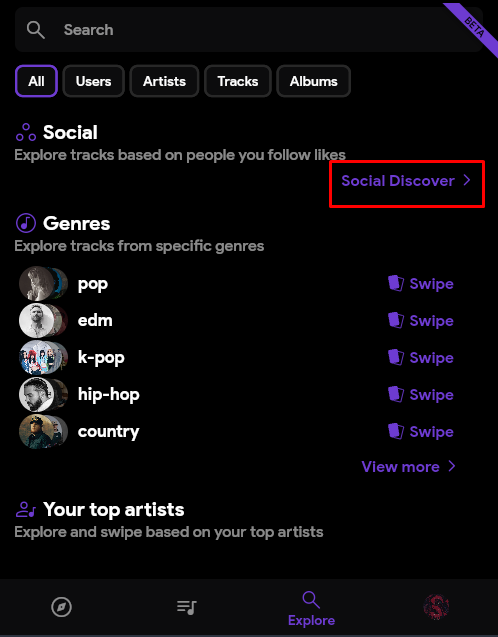 2. While using other wording like “Social following” for swiping the people you’re following liked songs