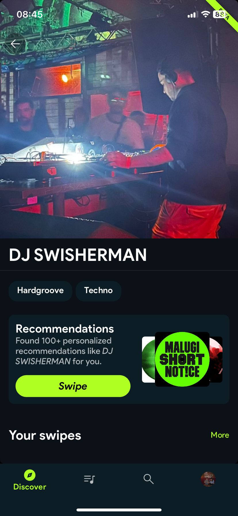 I'd love to be able to click on the sub-genres listed on an artists profile and swipe based on that subgenre.